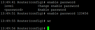 In the superuser view, the router can use the configure command to switch the configuration view for management. A configure command can support no and default, where no indicates setting the abort of a parameter and default indicates restoring the default setting of a parameter. The configure terminal (or conf t for short) command switches the system to configuration mode. In this setting the router can be configured. To exit the configuration mode use the exit command. All entered commands must be terminated with the wr command so that the changes are applied to the router.
