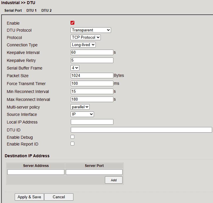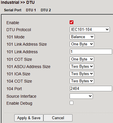 Configure serial ports 1 (RS232) and 2 (RS485).