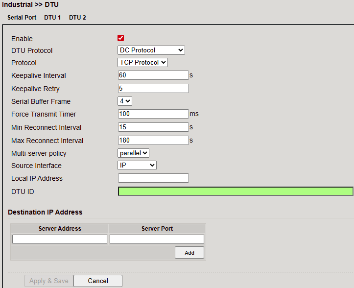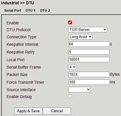 Configure serial ports 1 (RS232) and 2 (RS485).